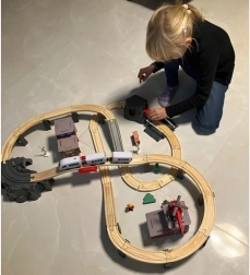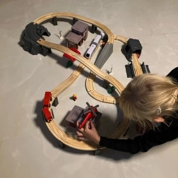 Kruzzel 22754 Circuit trenuleț din lemn cu baterii, 70 piese, 480 cm
