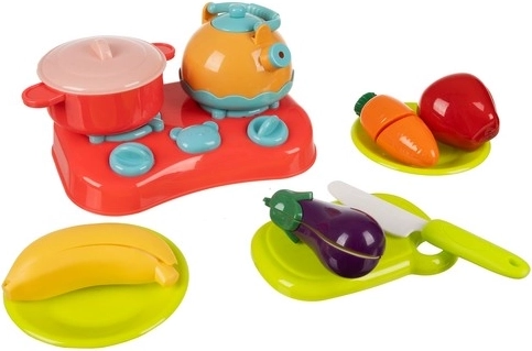 Setul de gătit în coș cu legume și fructe este un complement grozav pentru joaca micilor bucătari cărora le place să se joace de-a magazinul sau de-a gătitul. Copiilor le place să îi imite pe adulți, iar acest set le permite jocuri de rol încă de la vârste fragede și are un rol educativ. Colecția deosebit de „apetisantă” și variată de imitații de legume și fructe a fost realizată cu grijă, iar culorile lor vii și suculente adaugă valoare estetică, atrăgând atenția copilului și îndemnându-l la joacă.