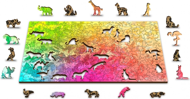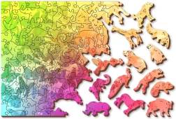 Puzzle-ul conține piese în formă de animale și obiecte, care pot fi folosite ca mici figurine.< /p>