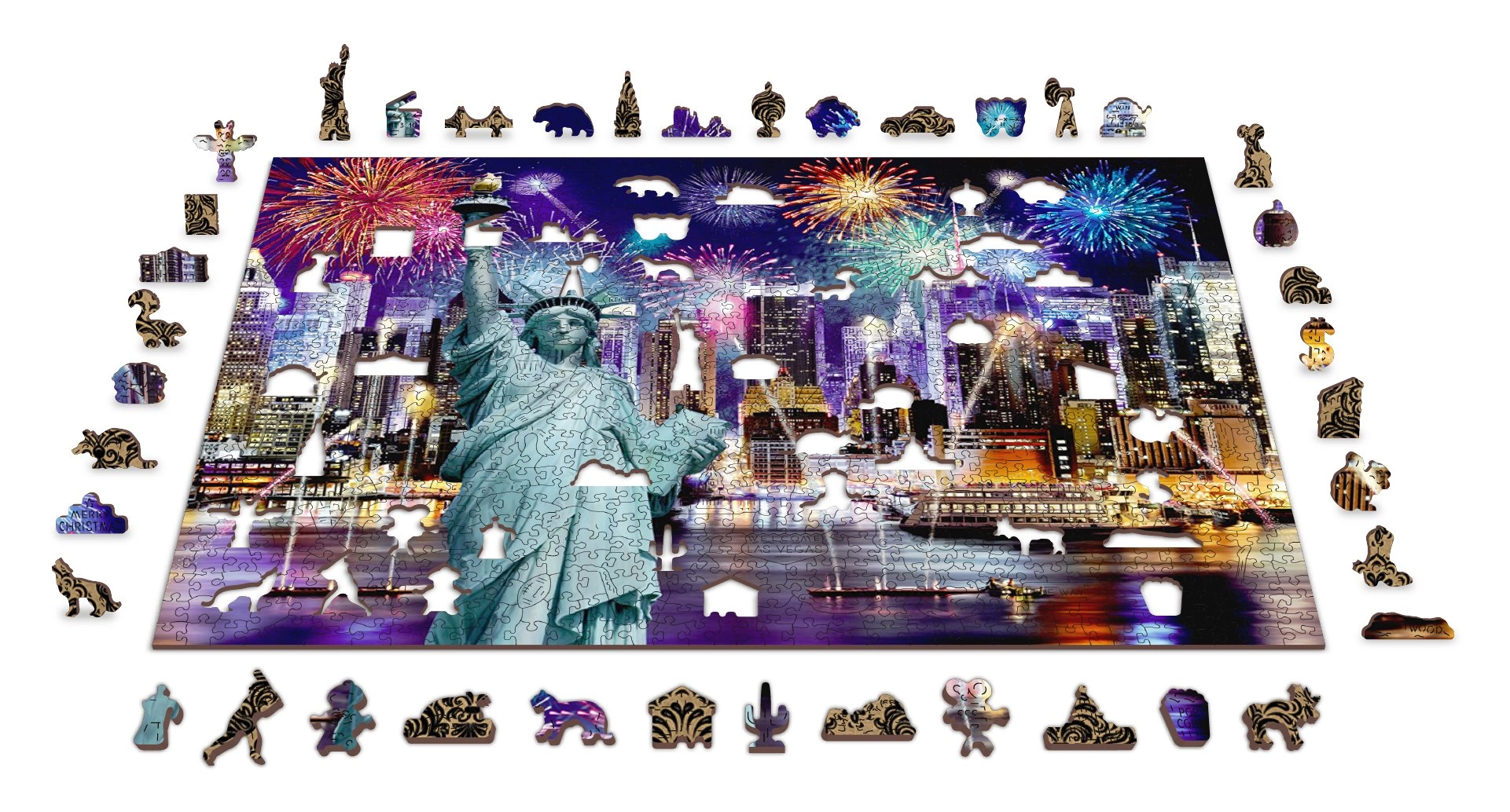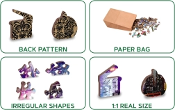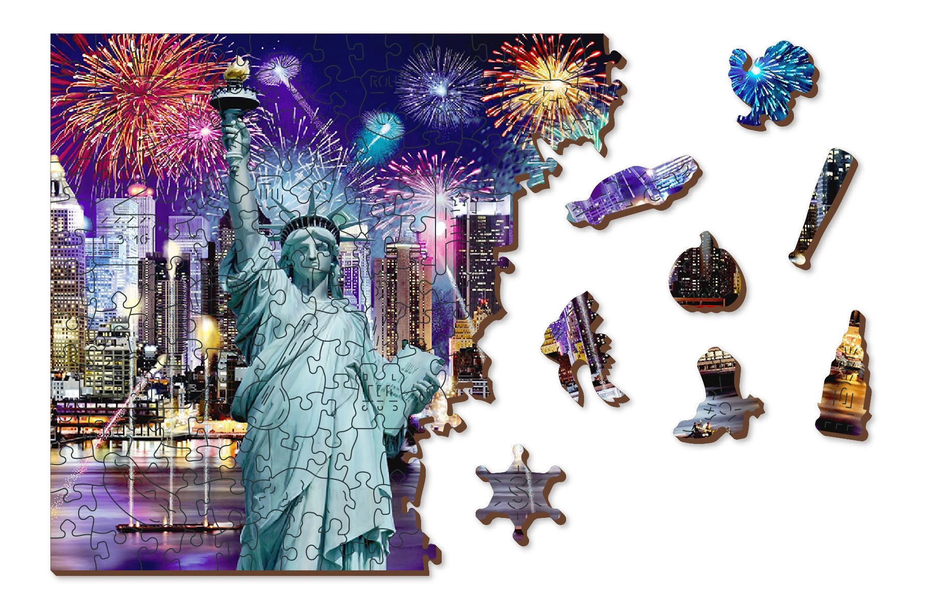 Plecați într-o aventură în New York-ul de Noapte cu puzzle-ul nostru de lux din lemn 2v1. Făcut cu grijă din material precis, acest puzzle oferă piese unice, tăiate în forme ce reprezintă animale, obiecte sau clădiri, și este, de asemenea, prietenos cu mediul.
