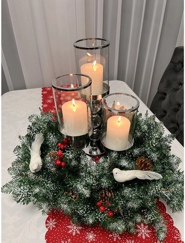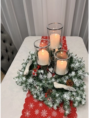 Decorat cu bobițe roșii și conuri de brad, evidențiază orice interior și adaugă farmec momentelor festive.