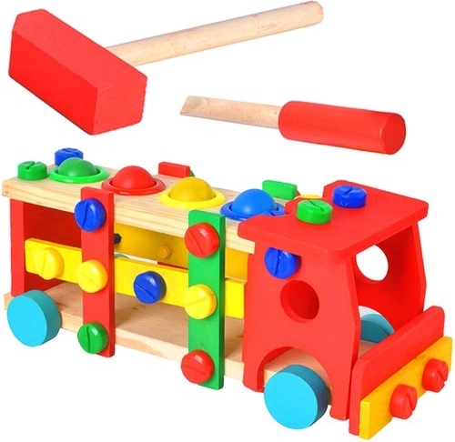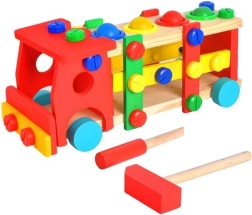 Camion educativ din lemn este o alegere excelentă pentru părinții care caută jucării care susțin dezvoltarea copiilor. Setul complet include diverse componente colorate, un ciocănel și o șurubelniță, asigurând ore de distracție și educație.