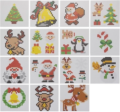 - 6000 de mărgele (13 culori), 2 plăcuțe, 15 modele, 2 extensii/plăcuțe mari, 10 magneți autocolanți, 15 agățători colorate, 5 hârtii pergament pentru călcat, pensetă