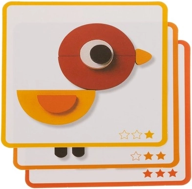 Setul include 20 de carduri cu modele de animale marcate cu steluțe. Copiii își cresc treptat nivelul de provocare și își întăresc gândirea logică și concentrarea.