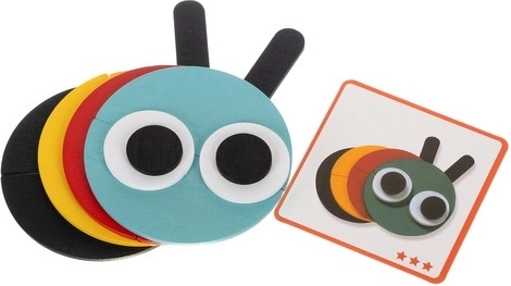 Descoperiți farmecul învățării prin joacă. Acest puzzle din lemn combină forme geometrice și culori vii, astfel încât copiii să poată crea cu ușurință motive cu animale după modelele incluse. Cardurile sunt marcate cu steluțe și îi ghidează pas cu pas prin trei niveluri de dificultate.
