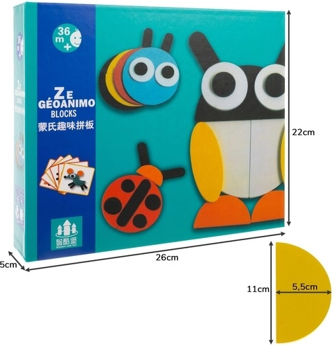 Puzzle-ul colorat din lemn cu animale din forme geometrice dezvoltă imaginația, creativitatea și motricitatea fină a copiilor. Cei mici asamblează după carduri în trei niveluri de dificultate, exersând astfel gândirea logică, concentrarea și răbdarea. Lemnul rezistent și săculețul practic pentru transport o transformă într-o jucărie educativă durabilă pentru fiecare zi.