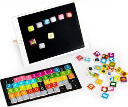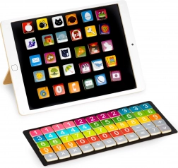 Descoperiți învățarea inteligentă prin joc cu tableta educațională din lemn ECOTOYS. Tablă magnetică în formă de tabletă, oferă numeroase activități – copiii pot aranja exemple simple, pot exersa numărarea și pot crea motive colorate din imagini magnetice. Jucăria este fabricată din lemn durabil și este 100% sigură pentru mâinile mici ale copiilor.