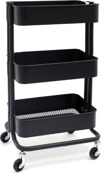 Dulap multifuncțional, mobil, cu trei niveluri, care vă permite să folosiți perfect spațiul liber din locuință, birou, garaj, frizerie. Datorită designului simplu este un dulap universal și practic. Dulapul multifuncțional pe roți se va potrivi perfect în bucătărie sau în cămară ca spațiu suplimentar de depozitare pentru recipiente cu alimente, borcane sau produse de curățenie. Cu trei coșuri obțineți posibilități uriașe de organizare. Produsul își va găsi cu siguranță utilitatea și în baie, unde facilitează organizarea cosmeticelor, rolelor de hârtie igienică, prosoapelor și produselor de curățenie pentru casă. Dulapul metalic poate servi și ca accesoriu interesant pentru birou sau pivniță. Biblioteca multifuncțională are patru roți care asigură o deplasare ușoară dintr-un loc în altul, atunci când este nevoie. Produsul este realizat din plastic de cea mai înaltă calitate, care garantează rezistență, stabilitate și durabilitate.