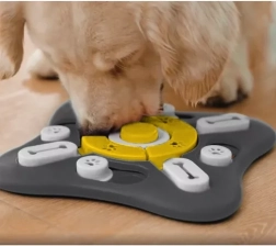 Jucăria conține părți mobile și compartimente ascunse pentru recompense, care mențin câinele activ și stimulat mintal.