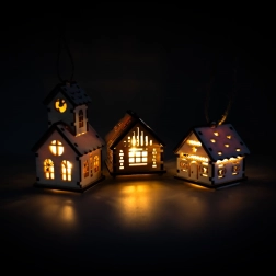 Mica căsuță 3D din lemn pare desprinsă dintr-o poveste – cu horn fumegând, ferestre și uși rotunjite și valuri delicate care amintesc de un turnuleț de zahăr pentru păpuși. Este ideală ca decorațiune pe tot parcursul anului pentru camera copilului, living sau pentru decor sezonier.
