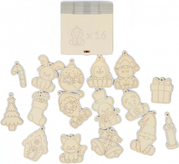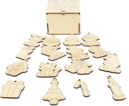 Creați o atmosferă magică de Crăciun cu magneții din lemn de plop. Formele și dimensiunile variate îi vor bucura pe copii și părinți și vor susține creativitatea – magneții se pot colora ușor și personaliza după stilul vostru. Datorită orificiului pot fi și agățați în brad sau în camera copilului.