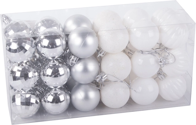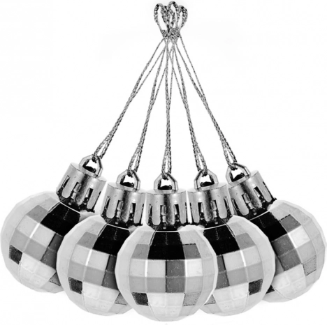 Setul include stiluri diverse, acoperind totul de la albul elegant până la globurile disco argintii strălucitoare.