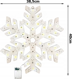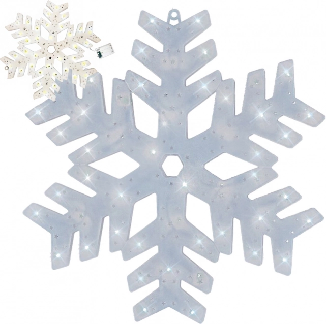 Acest fulg de zăpadă alb, elegant, cu luminițe LED discrete, este o alegere excelentă pentru decorarea festivă a ferestrelor. Construcția ușoară din plastic, cârligul practic pentru agățare și cablul de alimentare de 40 cm asigură o instalare rapidă și sigură.