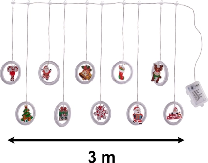 Această perdea luminoasă LED de Crăciun, cu motive colorate în cercuri, transformă fereastra sau peretele într-o decorațiune spectaculoasă. Datorită luminii alb cald și celor opt programe dinamice, creați cu ușurință efectul de atmosferă festivă dorit.