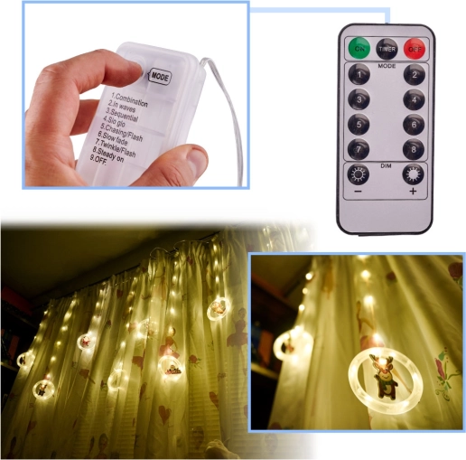 Alimentarea cu 3× AA vă permite să plasați luminile oriunde, fără priză. Temporizatorul integrat simplifică utilizarea și economisește bateriile. În pachet găsiți și o telecomandă practică pentru comutarea comodă a modurilor.