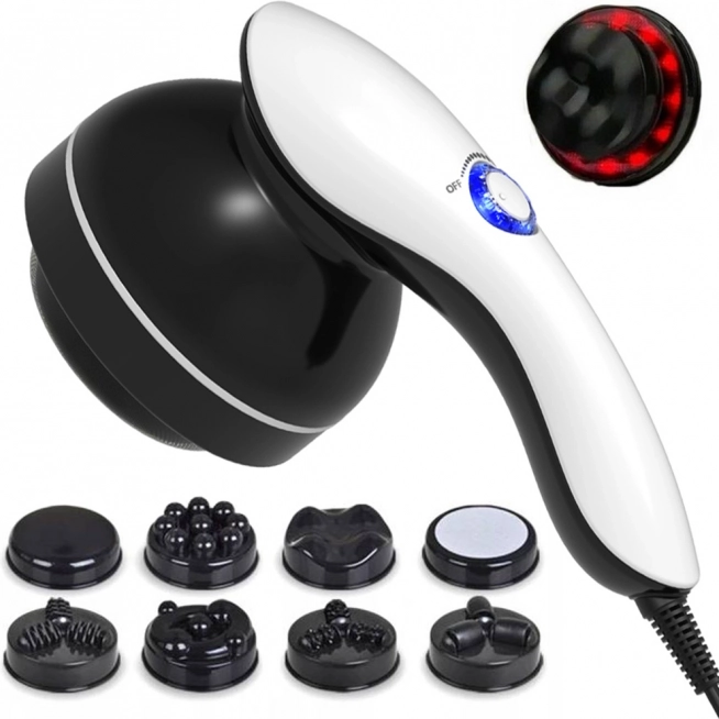 Bucurați-vă de îngrijire wellness acasă cu aparatul de masaj compact 9‑în‑1. Mișcarea de rotație de până la 3200 rpm pătrunde în straturile mai profunde ale pielii, susține microcirculația și ajută la țintirea zonelor problematice precum abdomenul, coapsele, fesele, șoldurile și brațele. Capul cu infraroșu integrat încălzește plăcut și sporește efectul masajului.