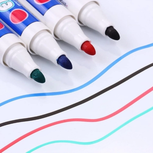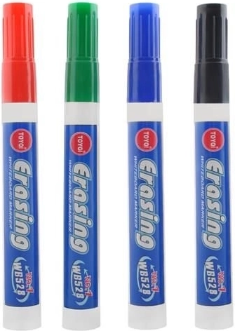 Pe tablele albe trebuie să scrieți doar cu markere special concepute. Aceste markere și stilouri pentru whiteboard pot fi șterse uscat fie cu un burete, fie cu șervețele de curățare. Markerele pentru tabla albă au un vârf conic, care asigură scriere confortabilă și fluidă. Datorită noii tehnologii, are o serie de avantaje, precum vizibilitate excelentă de la distanțe mai mari, linie neîntreruptă și faptul că nu lasă pete nedorite.