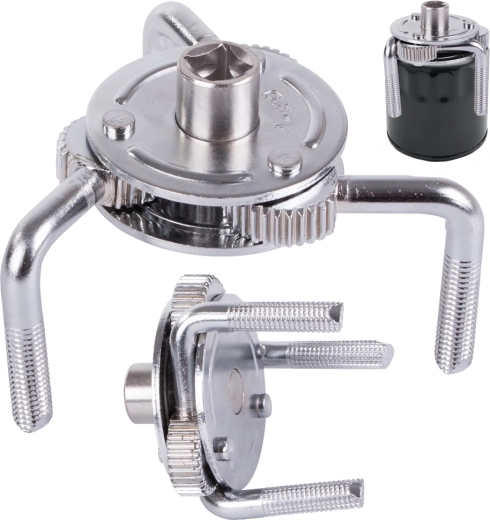Ajustați cheia pentru a se potrivi diverselor dimensiuni de filtre datorită brațelor ajustabile și mecanismului central de prindere.