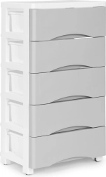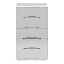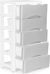 Această comodă cu sertare pe roți, în combinația universală alb-gri, aduce ordine în viața de zi cu zi. Este excelentă pentru baie (cosmetice și detergenți), camera copilului (jucării și seturi de construcție) sau birou (papetărie). Cinci sertare adânci oferă spațiu generos, iar mânerele frontale ergonomice asigură o glisare confortabilă.