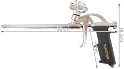 Pistol fiabil pentru spumă PU destinat montajelor, etanșărilor și izolării. Construcția robustă din metal garantează durată de viață îndelungată și stabilitate în lucru, în timp ce mânerul ergonomic din plastic oferă prindere sigură și confort chiar și la utilizări prelungite. Datorită duzei lungi ajungeți cu ușurință în rosturi și spații înguste.