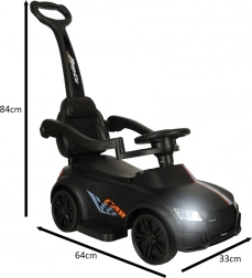 O mașinuță pentru copii cu design de curse care combină funcțiile unei mașinuțe de împins cu picioarele și ale unei jucării de împins. Datorită construcției solide din plastic, scaunului confortabil cu spătar înalt și barelor laterale de siguranță, este ideală pentru primele plimbări acasă și afară. Luminile și sunetele adaugă atmosfera unei curse adevărate.
