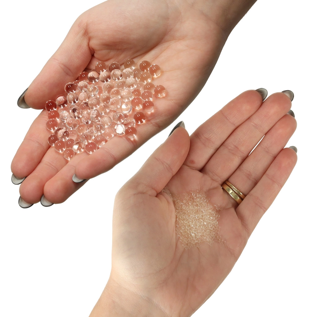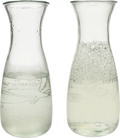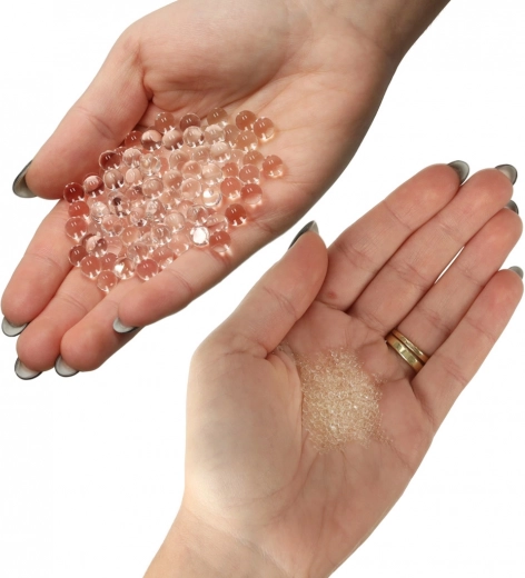 Bilele hidrogel transparente, după scufundare în apă, se umflă în 3–4 ore până la un diametru de 7–8 mm. Datorită capacității ridicate de reținere a apei, sunt potrivite ca element decorativ în vaze, pentru proiecte DIY și ca ajutor pentru menținerea umidității substratului la plantele de interior.