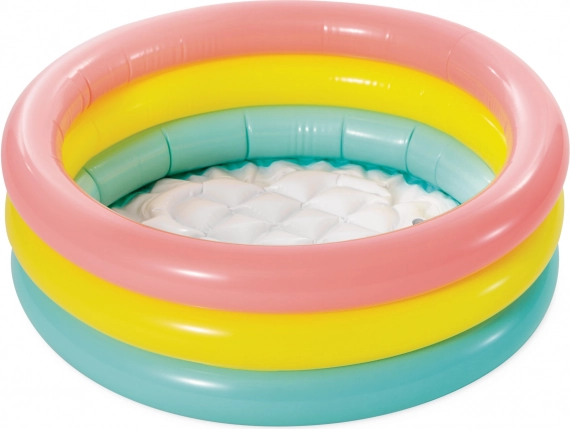 Oferiți copiilor dumneavoastră distracția la soare cu această piscină gonflabilă, care este ideală pentru jocurile de apă în aer liber. Piscina este fabricată din vinil durabil și este dotată cu trei inele în culori vesele. Cu un fund gonflabil moale, este confortabilă și sigură pentru copii, care vor adora să se bălăcească în apă.