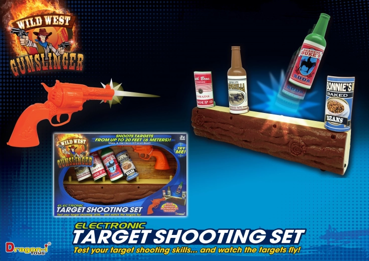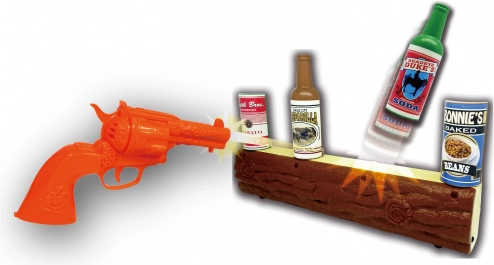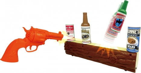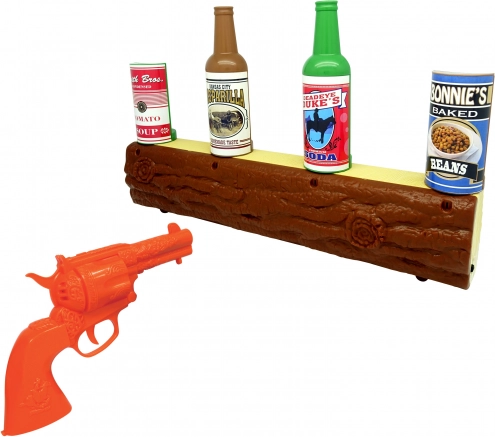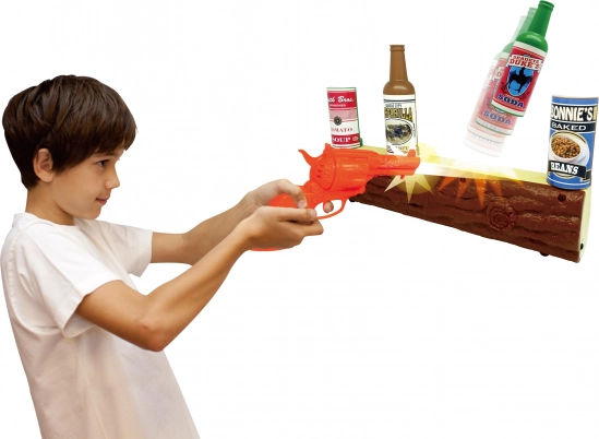 Setul include o țintă de tragere, un revolver și accesorii decorative care le permit copiilor să își creeze propriul Vest Sălbatic.