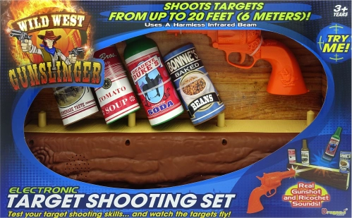 Cu jucăria noastră Vestul Sălbatic - jucărie de tras, copiii pot călători în timp și spațiu în lumea cowboy-ilor, a indienilor și a tâlharilor, dezvoltându-și în același timp abilitățile. Este un cadou ideal pentru micii iubitori ai istoriei Vestului Sălbatic.