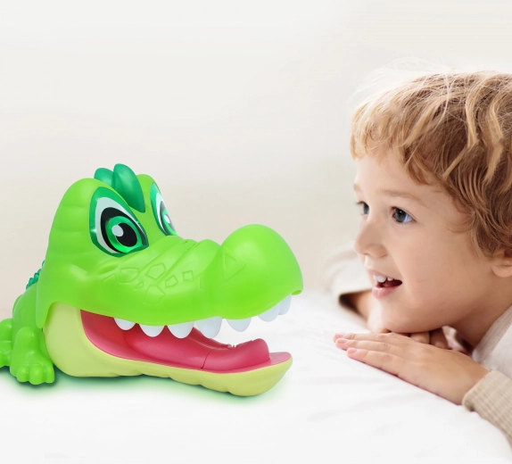 - Jucărie interactivă: crocodilul reacționează la sunete și la vocea copilului, creând o experiență interactivă și distractivă.