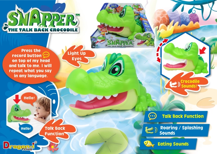 Cumpărați chiar astăzi și oferiți-i copilului dumneavoastră ocazia de a descoperi lumea fascinantă a comunicării cu Snapper The Talk Back Crocodile!