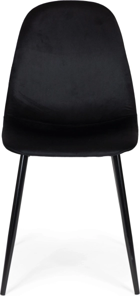 Setul stilat de patru scaune impresionează prin design modern, tapițerie din catifea și picioare metalice pentru durabilitate. Oferă un confort ridicat la ședere datorită spumei de calitate și spătarului ergonomic. Capacele de protecție protejează pardoseala, iar finisajul universal negru se potrivește în dining, living sau birou.
