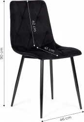 Setul de scaune ModernHome se remarcă prin tapițeria fină din catifea cu matlasare tip diamant, ce inspiră lux și este totodată plăcută la atingere. Picioarele metalice negre asigură rezistență și stabilitate, iar capetele de protecție împiedică zgârierea podelei. Datorită aspectului versatil, scaunele se potrivesc perfect în dining, living, bucătărie sau birou.