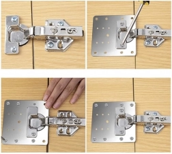 Setul conține 4 plăci și șuruburi pentru montaj, care sunt compatibile cu majoritatea balamalelor de mobilier de pe piață.
