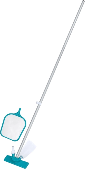 Setul include toate componentele necesare pentru menținerea curățeniei piscinei.