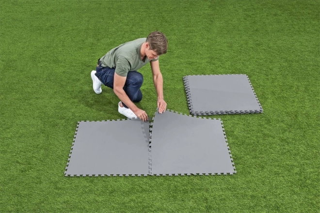 Covorul spumă Bestway este perfect pentru protecție și confort atât în interior, cât și în grădină. Fiecare piesă măsoară 78 x 78 cm și setul de nouă piese acoperă o suprafață de 5,45 m².