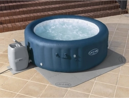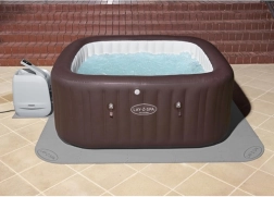 Protejați-vă cada cu hidromasaj gonflabilă eficient și elegant. Covorașul de protecție Bestway din polietilenă rezistentă previne în mod fiabil uzura bazei, umezeala și murdăria, în timp ce oferă izolație termică pentru o menținere mai bună a temperaturii apei. Datorită sistemului tip puzzle, montajul durează doar câteva minute, iar suprafața finală are 196 × 196 cm cu colțuri rotunjite.