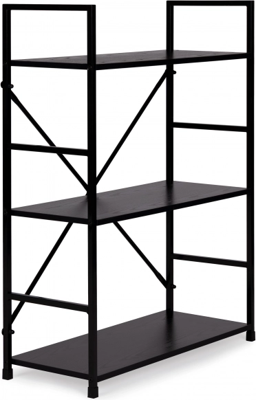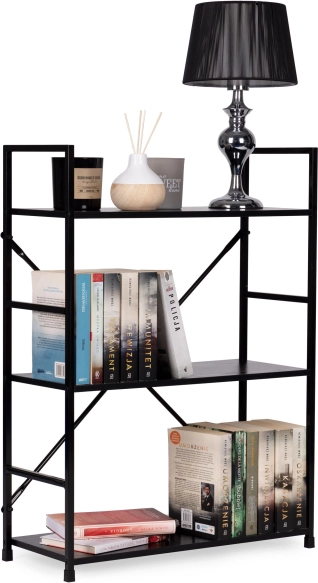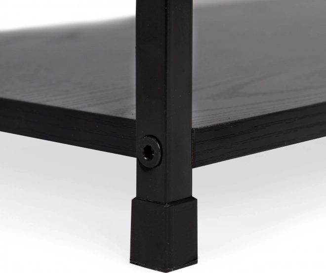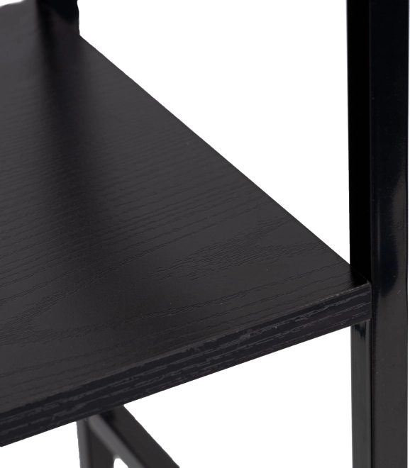 Biblioteca LOFT combină designul minimalist cu materiale rezistente. Trei rafturi spațioase din MDF cu decor de lemn sunt completate de o construcție metalică solidă cu întărire în cruce pentru stabilitate excelentă. Datorită finisajului universal negru, se potrivește ușor atât în interioare moderne, cât și industriale.