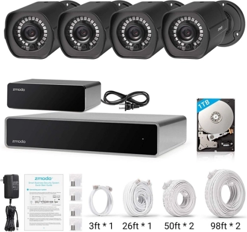 Setul complet de supraveghere ZMODO oferă 4× camere IP 1080P cu vedere pe timp de noapte, NVR cu 8 canale cu disc de 1 TB pentru până la 30 de zile de înregistrare și repetor sPoE pentru instalare ușoară. Conectare simplă P2P fără IP public, monitorizare prin aplicația mobilă Zmodo, ieșire HDMI și camere rezistente IP65 pentru utilizare la interior și exterior.