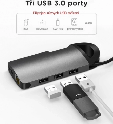 Umax U‑Connect Type‑C Multiport H8 transformă un singur port USB‑C într-un centru versatil de conectivitate. Conectați un monitor la rezoluție 4K @ 30 Hz, bazați-vă pe un Gigabit Ethernet stabil și sincronizați simultan accesoriile prin 3× USB 3.0. Datorită Power Delivery pentru încărcare passthrough, laptopul rămâne mereu alimentat.