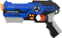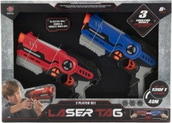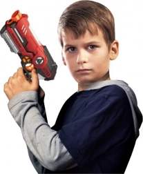 În pachet sunt două pistoale laser – provoacă-ți prietenul și măsurați-vă forțele. Raza de detectare a loviturilor de până la 40 m garantează un joc plin de adrenalină acasă și în aer liber.