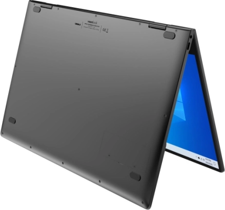 Umax VisionBook 14Wr Flex este un laptop 2‑în‑1 versatil, cu ecran tactil IPS de 14,1" și rezoluție Full HD, care datorită balamalei rotative la 360° se transformă ușor din mod laptop în tabletă, cort sau suport. Șasiul metalic cu rame subțiri oferă un aspect premium, rămânând totodată ușor și rezistent pentru utilizarea zilnică în mișcare.