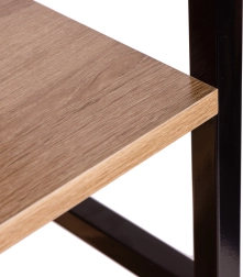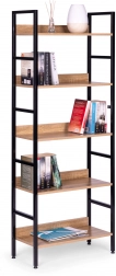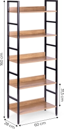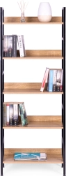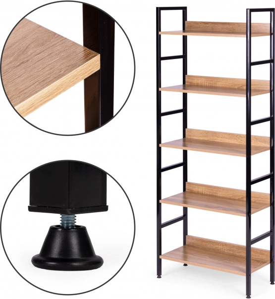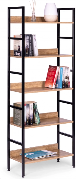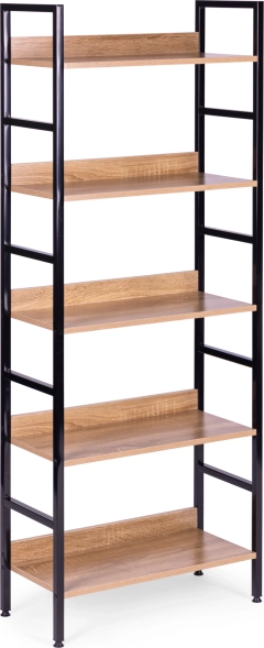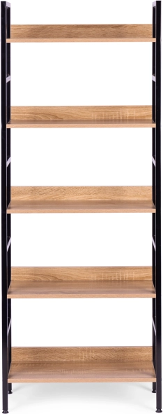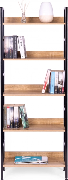 Rafturile sunt realizate din placă MDF, acoperită cu furnir care imită lemnul. Dimensiunile lor de 56 x 25,5 cm găzduiesc confortabil toate obiectele dvs. preferate. Cadrul bibliotecii este realizat din metal vopsit în câmp electrostatic, iar picioarele sunt prevăzute cu protecții speciale pentru podea.