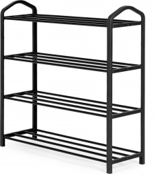 Etajera metalică pentru încălțăminte cu patru polițe, în design modern de la ModernHome, este soluția perfectă pentru organizarea pantofilor acasă sau la birou. Construcția sa universală îți permite să așezi cu ușurință până la 12 perechi de pantofi pe suprafețe realizate din tuburi metalice, ceea ce le asigură stabilitate chiar și la încărcare maximă.