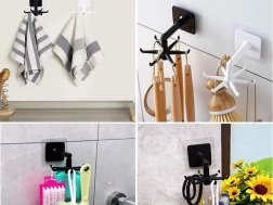 Șase brațe pentru a agăța diferite obiecte, ideal pentru ustensilele de bucătărie și accesoriile de baie.