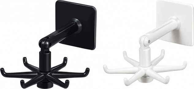 Cuierul este realizat din plastic de calitate și este conceput pentru a oferi soluții versatile de agățare nu doar pentru vesela de bucătărie, ci și pentru accesoriile de baie precum bureți sau prosoape. Datorită designului rotativ de 360° puteți accesa rapid și ușor toate obiectele depozitate.