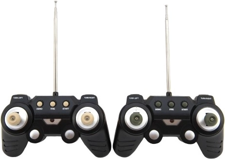 Fiecare tanc funcționează pe o frecvență diferită (27 și 40 MHz), astfel încât nu se interferează reciproc. Ideal pentru duel direct, cu mod de joc „vieți” și distanță recomandată de luptă de până la 4 metri.