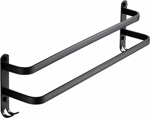 Suport de perete stilat din metal pentru prosoape, în stil loft modern. Fabricat din aluminiu durabil, cu acoperire prin pulverizare în negru mat, ceea ce garantează o durată de viață lungă și rezistență la umiditate și uzură. Acest accesoriu practic pentru baia dvs. oferă două brațe pentru agățarea prosoapelor și cârlige suplimentare în partea de jos pentru și mai mult spațiu de depozitare.