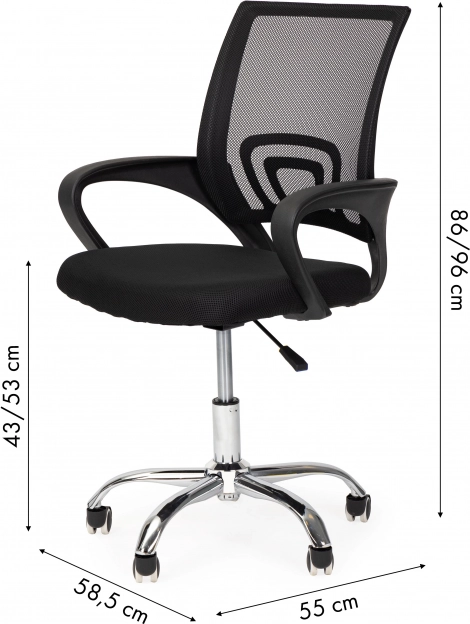 Scaunul este echipat cu mecanisme ușor de utilizat pentru reglaje complete, ceea ce îl face prietenos cu utilizatorul. Plasa durabilă de pe spătar asigură o bună ventilație, în timp ce baza metalică cromată cu cinci roți oferă stabilitate și mobilitate.