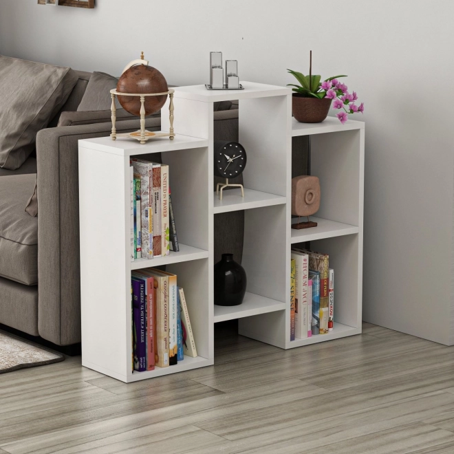 Creează un spațiu de depozitare clar și estetic pentru cărți, reviste și decorațiuni. Această bibliotecă albă cu rafturi deschise se remarcă prin linii curate și geometrie atemporală, potrivite interioarelor moderne. Datorită construcției rotative poți adapta raftul spațiului și îi poți schimba orientarea după nevoie.